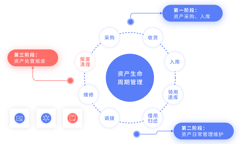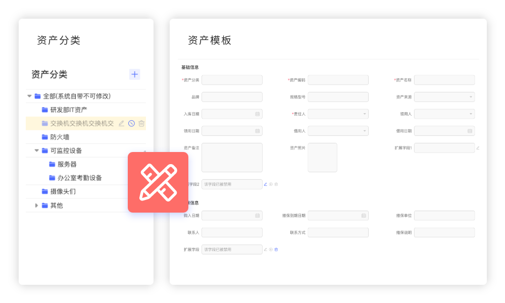 独立的资产管理系统,设备与资产系统分割,资产与监控信息不互通。 |